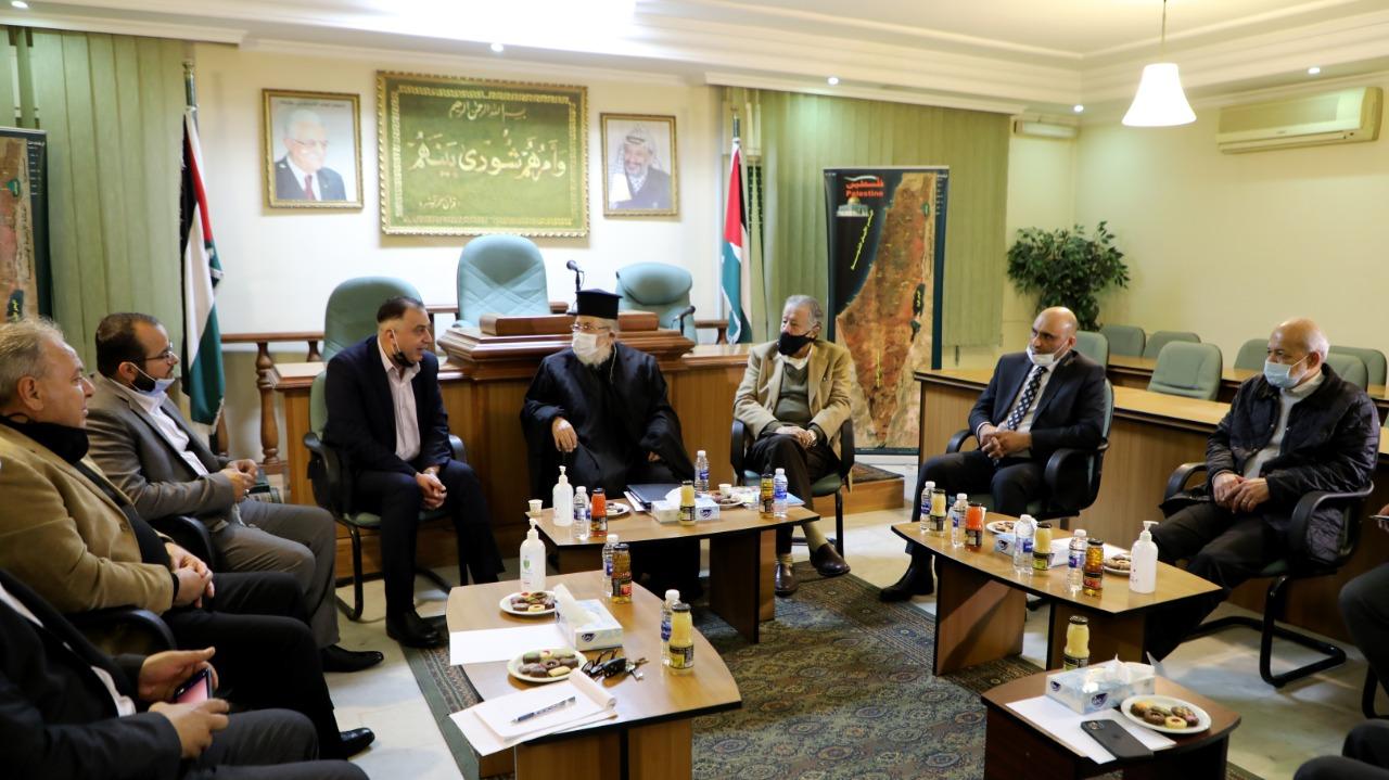 وأشاد الاب قسطنطين، ومحمد صبيح وأعضاء المجلس بمواقف الأردن ملكاً وحكومة وبرلماناً وشعباً ازاء القضية الفلسطينية والقدس، معربين عن تقديرهم لمجلس النواب ورئاسته وكافة أعضائه في الدفاع عن حقوق الشعب الفلسطيني في مختلف المحافل الدولية والإقليمية. وأكدوا دعمهم للوصاية الهاشمية على المقدسات الإسلامية والمسيحية، لافتين الى أن الوصاية حالت دون تنفيذ الاحتلال الإسرائيلي الكثير من المخططات التي تستهدف الوضع القائم.