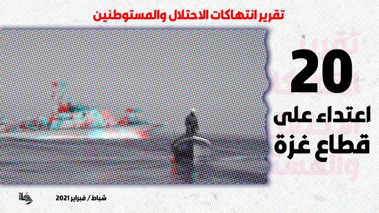 بلغت حصيلة الاعتداءات التي نفذها جيش الاحتلال الإسرائيلي على قطاع غزة خلال شباط/ فبراير الماضي (20) اعتداءً.