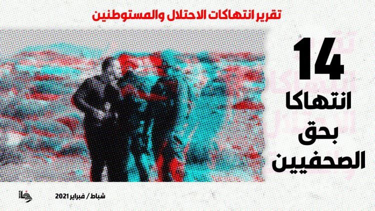 رصدت "وفا" في تقريرها لشهر شباط/ فبراير الماضي، 14 انتهاكا من قبل الاحتلال بحق الصحفيين في الأرض الفلسطينية المحتلة، تنوعت ما بين اعتقال واحتجاز وسحب بطاقات وإطلاق نار التي لم ينتج عنه إصابات.