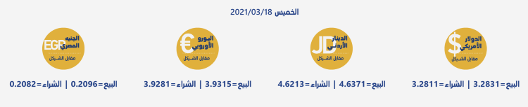 رام الله 18-3-2021 وفا- جاءت أسعار العملات مقابل الشيقل الإسرائيلي، اليوم الخميس، حسب سلطة النقد، على النحو التالي: