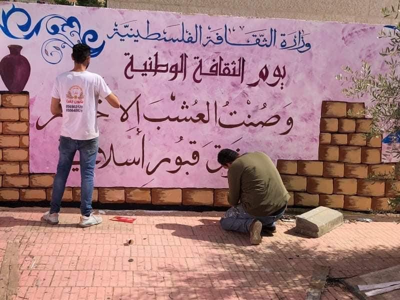 جنين 21-3-2021 وفا- أحيت محافظة جنين، اليوم الأحد، يوم الثقافة الوطنية برسم جداريات وكتابة مقاطع شعرية ومقتطفات أدبية لكتاب فلسطينيين كان لهم الدور البارز في تعزيز الصمود وبث روح المقاومة والنضال.