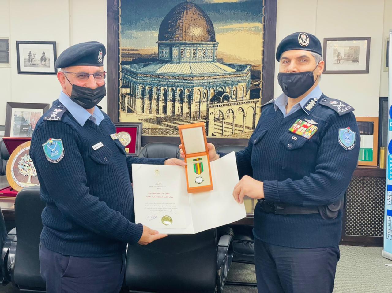 رام الله 27-3-2021 وفا- سلّم مدير عام الشرطة اللواء حازم عطا الله العقيد عباس محمد بهجت سويد ميدالية الخدمة الممتازة العسكرية "الفضية"، نيابة عن رئيس دولة فلسطين محمود عباس.