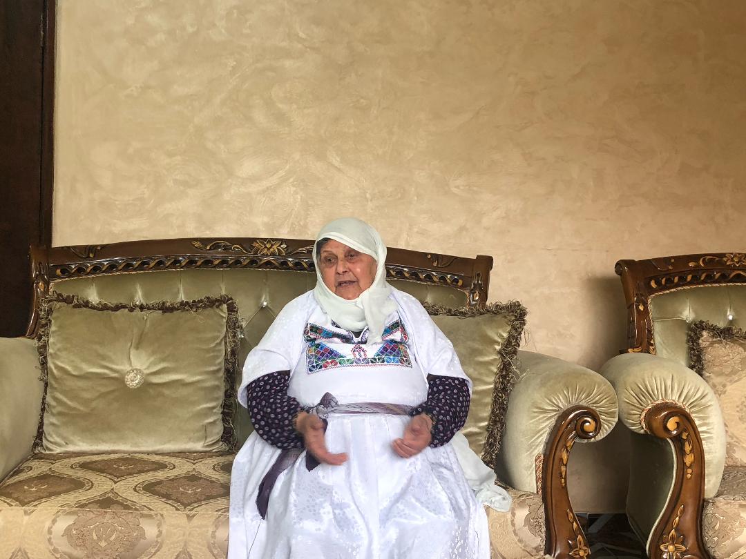الحاجة أبو خضرة التي تجملت بالثوب المطرز رمز بلدتها، تحمل حماسا ثابتا تحاول نقله لأحفادها لمواجهة الاحتلال الذي يعمل جاهدا على سلب الأراضي والاستيطان فيها وتحثهم على مقاومة أطماعه.