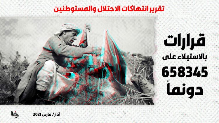 أعلنت سلطات الاحتلال الإسرائيلي خلال شهر آذار الماضي، مساحات من أراضي شرق بلدة يطا جنوب الخليل أراضٍ حكومية، كما صادقت محكمتها على تنفيذ بناء مصعد للمستوطنين في الحرم الإبراهيمي. كذلك، سلمت سلطات الاحتلال محافظ القدس عدنان غيث خلال الشهر الماضي قرارين، الأول يقضي بمنعه من الاتصال والتواصل مع الرئيس محمود عباس و50 شخصية فلسطينية، والثاني يقضي بمنعه من دخول الضفة والعمل في مكتبه بالرام، كما سحبت بطاقة (VIP) من وزير الخارجية والمغتربين رياض المالكي، وألغت التنسيق الخاص بالمرور على المعابر والحدود.