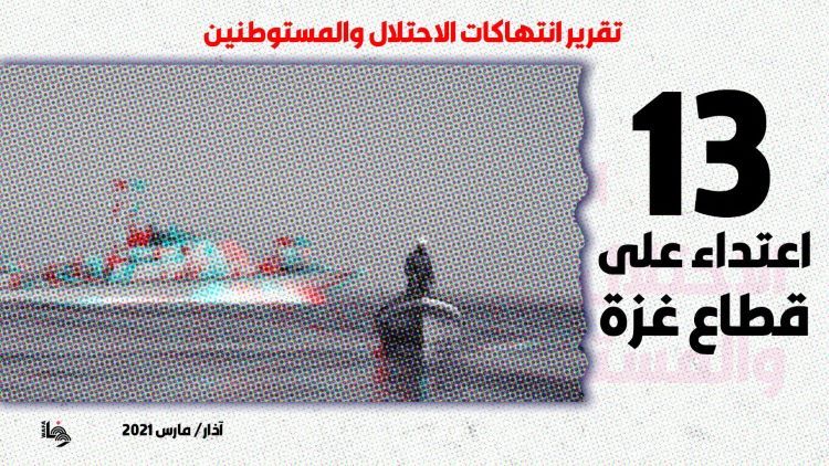 بلغت حصيلة الاعتداءات التي نفذها جيش الاحتلال الإسرائيلي على قطاع غزة خلال آذار/ مارس الماضي (13) اعتداءً.