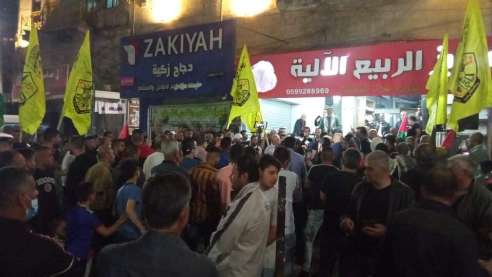 جنين 25-4-2021 وفا- شارك المئات من المواطنين في محافظة جنين، مساء اليوم الأحد، في مسيرة حاشدة دعت اليها حركة فتح، اسنادا للقدس ودعما للأقصى ولهبة المقدسيين الذين يتعرضون لاعتداء قوات الاحتلال والمستوطنين.