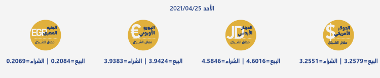 رام الله 25-4-2021 وفا- جاءت أسعار العملات مقابل الشيقل الإسرائيلي، اليوم الأحد، حسب سلطة النقد، على النحو التالي: