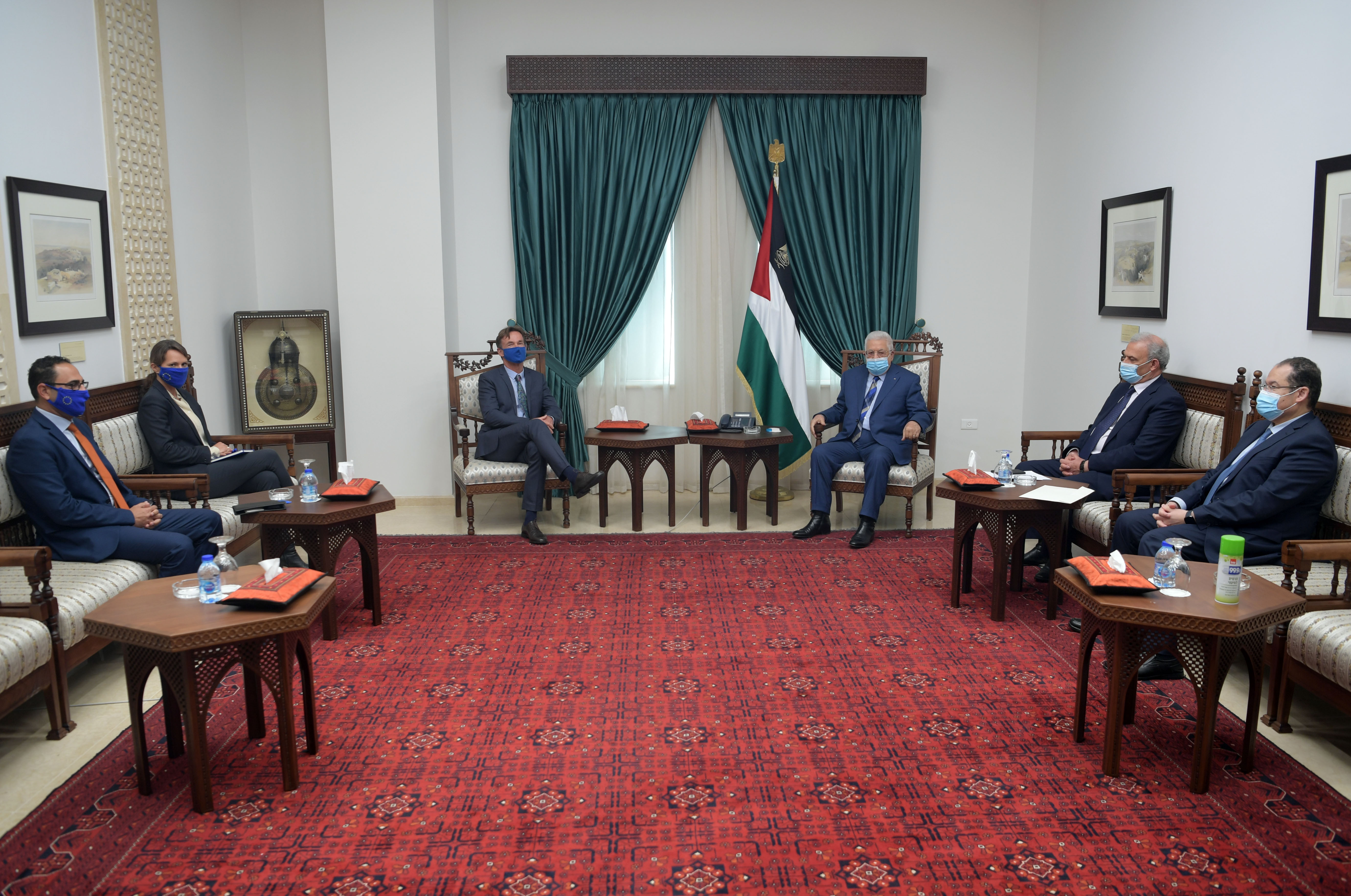 وحضر اللقاء، نائب رئيس الوزراء زياد أبو عمرو، ووزير الخارجية رياض المالكي، ورئيس جهاز المخابرات العامة اللواء ماجد فرج، والمستشار الدبلوماسي لسيادته مجدي الخالدي، فيما حضر من الجانب الأوروبي، ماريا فيلاسكو نائبة الممثل، والمستشار شادي عثمان.
