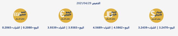 رام الله 29-4-2021 وفا- جاءت أسعار العملات مقابل الشيقل الإسرائيلي، اليوم الخميس، حسب سلطة النقد، على النحو التالي:
