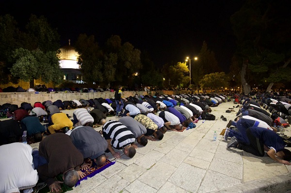 القدس 30-4-2021 وفا- أدى نحو 70 ألف مصل صلاة العشاء والتراويح في رحاب المسجد الأقصى المبارك، رغم إجراءات الاحتلال في مدينة القدس.