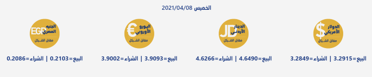 رام الله 8-4-2021 وفا- جاءت أسعار العملات مقابل الشيقل الإسرائيلي، اليوم الخميس، حسب سلطة النقد، على النحو التالي: