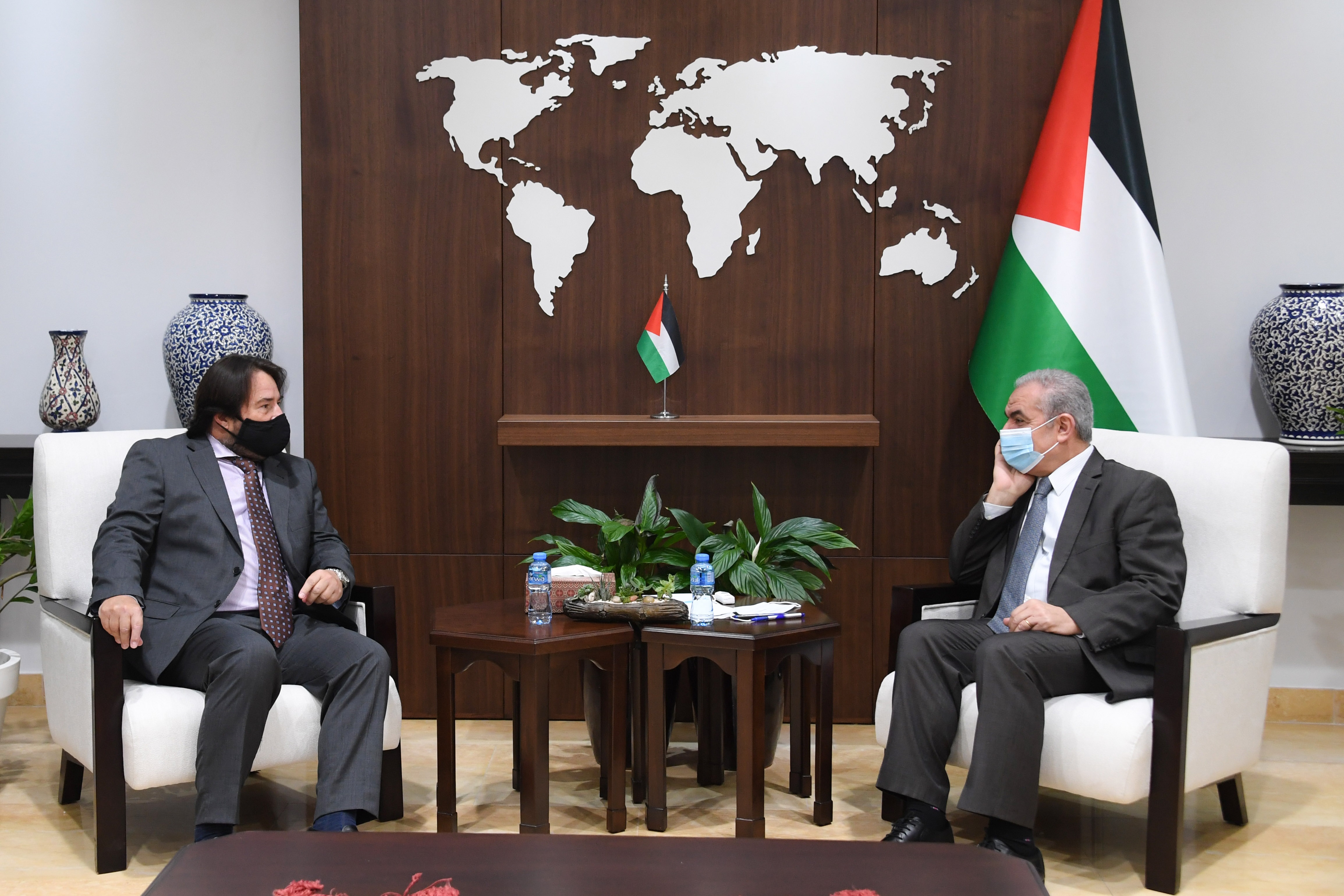 وبحث رئيس الوزراء مع الممثل التشيلي تعزيز التعاون المشترك بين البلدين في العديد من المجالات، وتقديم كافة التسهيلات له خلال فترة عمله لدى فلسطين.