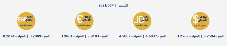 رام الله 17-6-2021 وفا- جاءت أسعار العملات مقابل الشيقل الإسرائيلي، اليوم الخميس، حسب سلطة النقد، على النحو التالي: