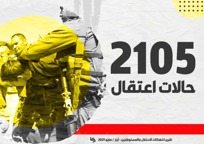 واصلت قوات الاحتلال الإسرائيلي، حملات الاعتقال خلال شهر أيار/ مايو، والتي طالت (2105) مواطنا، بينهم 1700 من فلسطينيي الـ48.