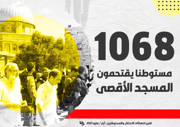 ورصدت "وفا" في تقريرها، اقتحام (1068) مستوطنا بحماية شرطة الاحتلال المسجد الأقصى المبارك، علما أن فترة العدوان على قطاع غزة، خلال شهر أيار شهدت توقفا في عمليات الاقتحام.