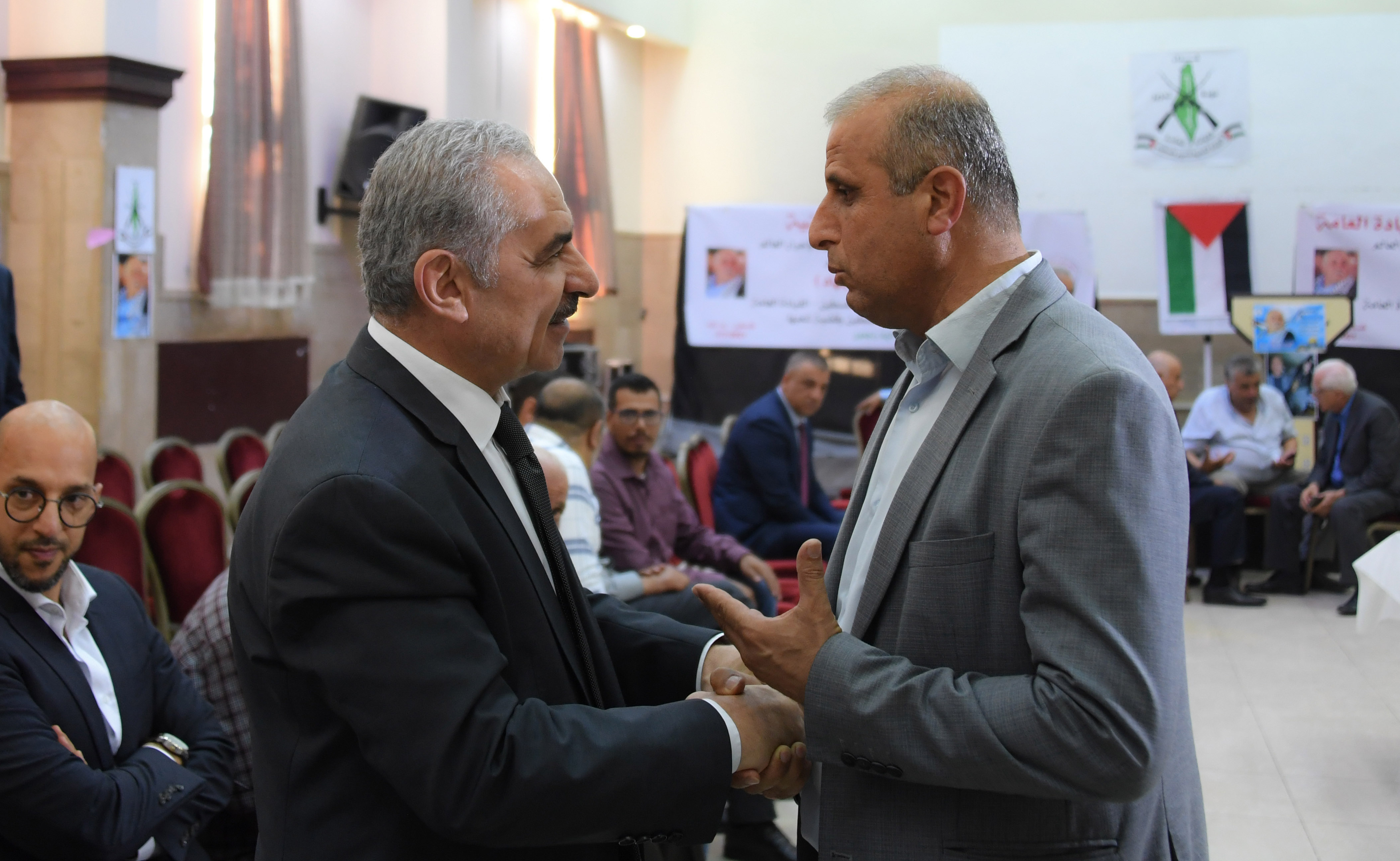 رام الله 11-7-2021 وفا- قدم رئيس الوزراء محمد اشتية، اليوم الأحد، برام الله، واجب العزاء بوفاة القائد الفلسطيني، الأمين العام للجبهة الشعبية لتحرير فلسطين- القيادة العامة أحمد جبريل.