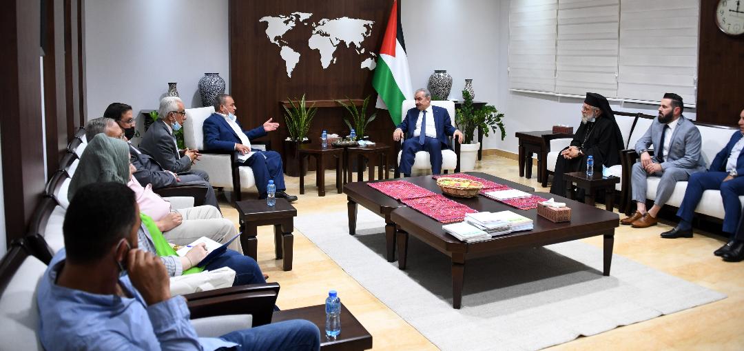 رام الله 18-7-2021 وفا- استقبل رئيس الوزراء محمد اشتية، اليوم الأحد، في مكتبه برام الله، وفدا من مركز خليل أبو ريا للتأهيل، وعددا من ممثلي مؤسسات وفعاليات محافظة رام الله والبيرة.