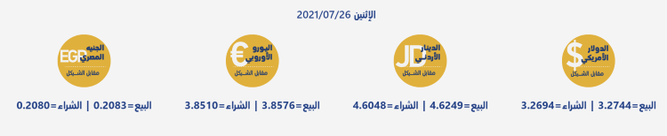 رام الله 26-7-2021 وفا- جاءت أسعار العملات مقابل الشيقل الإسرائيلي، اليوم الإثنين، حسب سلطة النقد، على النحو التالي: