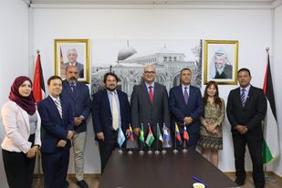 القدس 11-8-2021 وفا- استقبل وزير شؤون القدس فادي الهدمي في مقر الوزارة ببلدة الرام، اليوم الأربعاء، سفراء وممثلي دول أميركا اللاتينية المعتمدين لدى دولة فلسطين، ووضعهم في صورة الأوضاع الخطيرة بمدينة القدس.