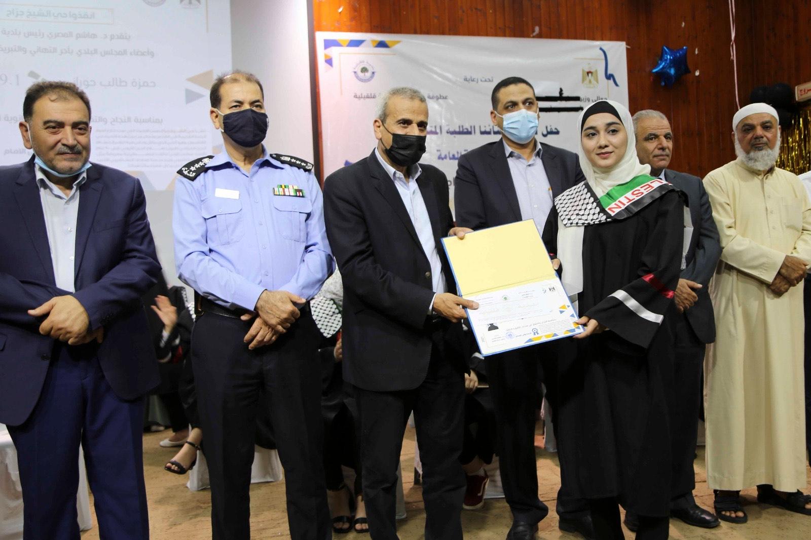 قلقيلية 16-8-2021 وفا- كرمت بلدية ومحافظة وتربية وتعليم قلقيلية، اليوم الاثنين، أوائل طلبة الثانوية العامة للعام 2021، "فوج الشيخ جراح".
