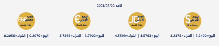 رام الله 22-8-2021 وفا- جاءت أسعار العملات مقابل الشيقل الإسرائيلي، اليوم الأحد، حسب سلطة النقد، على النحو التالي: