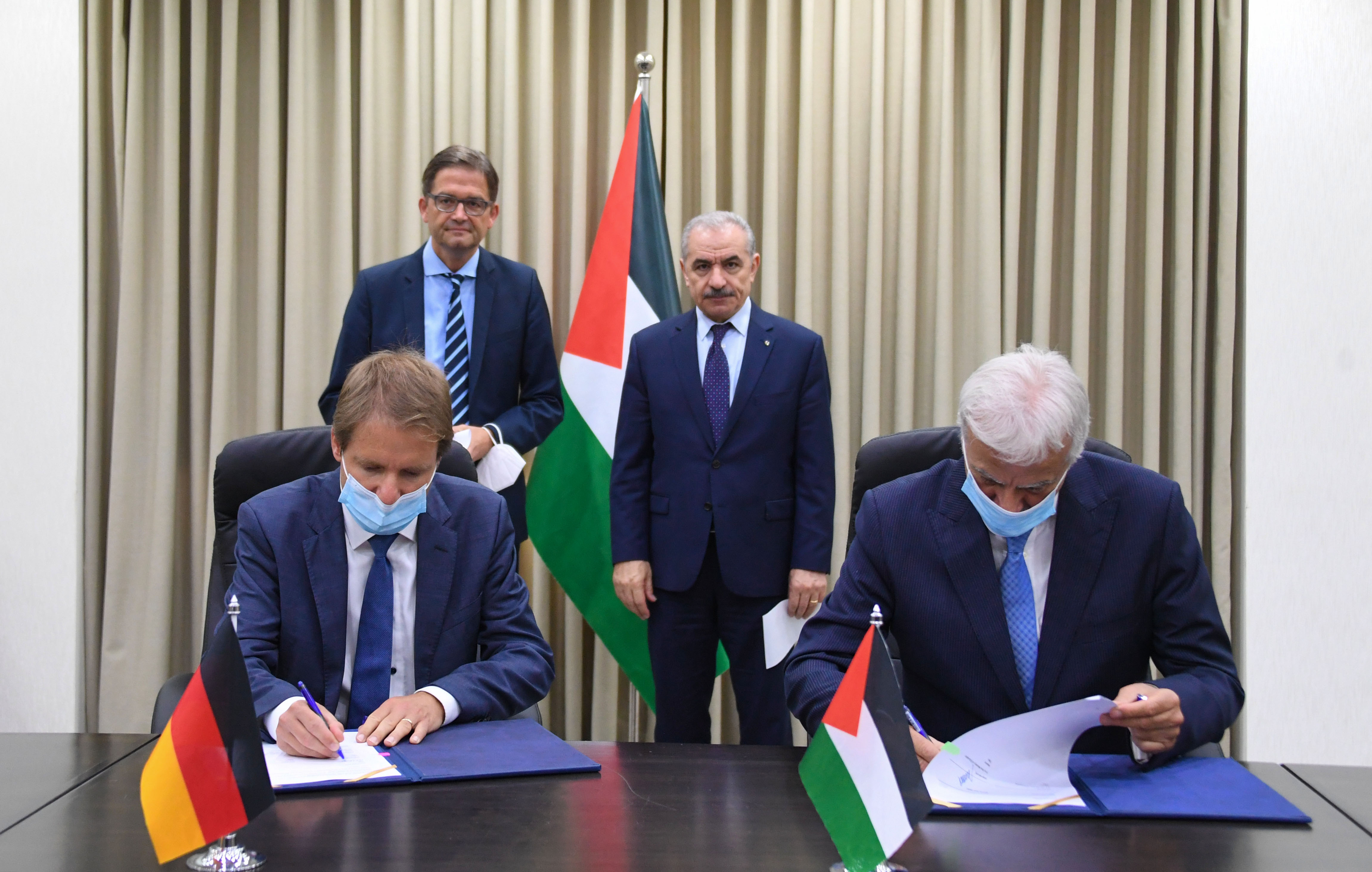 وقبيل توقيع الاتفاقية، التقى رئيس الوزراء مع الممثل الألماني الجديد، حيث رحب به وتمنى له التوفيق في مهمته، معربا عن تقديم كافة التسهيلات لعمله في فلسطين، مثمنا الدعم الألماني المستمر والثابت، وموقف ألمانيا تجاه التأكيد على حل الدولتين.