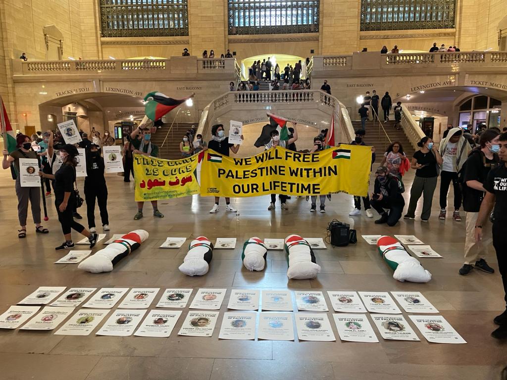 نيويورك 30-8-2021 وفا- تظاهر العشرات من المتضامنين مع شعبنا الفلسطيني في مدينة نيويورك في الولايات المتحدة الأميركية، مطالبين الإدارة الأميركية بالتدخل لوقف جرائم القتل الاسرائيلية المتصاعدة والعمل على إعادة جثامين الشهداء الذين تحتجزهم اسرائيل.