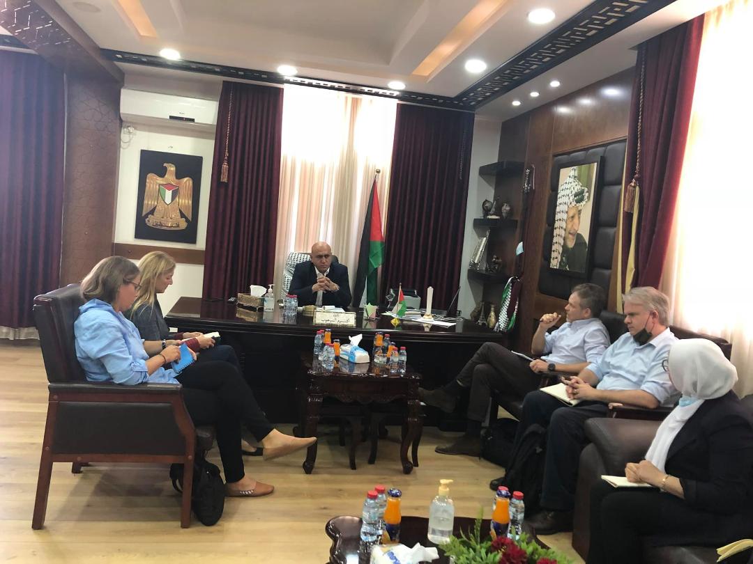 جنين 31-8-2021 وفا- أطلع محافظ جنين أكرم الرجوب، طاقم مكتب المنسق الخاص لعملية السلام في الأمم المتحدة على الأوضاع العامة في المحافظة.