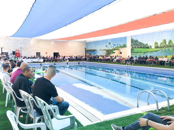 وجرى الاحتفال بافتتاح الملعب والمسبح، تحت رعاية رئيس دولة فلسطين محمود عباس، بحضور رسمي وشعبي.