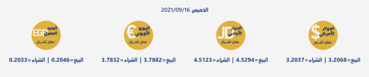 رام الله 16-9-2021 وفا- جاءت أسعار العملات مقابل الشيقل الإسرائيلي، اليوم الخميس، حسب سلطة النقد، على النحو التالي: