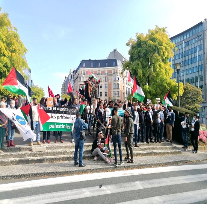 بروكسل 20-9-2021 وفا- نظمت الجالية الفلسطينية في بلجيكا ولكسمبورغ، بالتنسيق مع المؤسسات والجمعيات البلجيكية المتضامنة مع فلسطين، اليوم الاثنين، وقفة تضامنية دعما وإسنادا للأسرى في سجون الاحتلال الإسرائيلي، أمام مقر مؤسسات الاتحاد الاوروبي.