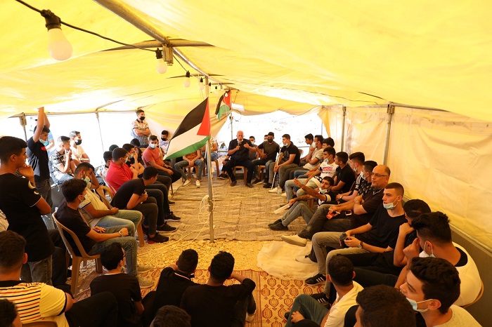 سلفيت 22-9-2021 وفا علا موقدي في خطوة هي الأولى من نوعها في تطوير المقاومة الشعبية وتسليط الضوء على الأراضي المهددة بالاستيطان، نظمت هيئة مقاومة الجدار والاستيطان، والفصائل الوطنية، وحركة "فتح" في مدينة سلفيت، "مخيم الأمم" على أراضي منطقة " المراحات" القريبة من منطقة الرأس المهددة بالاستيلاء من قبل المستوطنين.