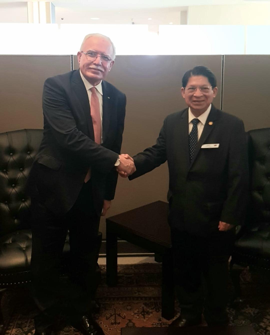 وشكر المالكي نظيره النيكاراغوي خلال اللقاء الذي عقد على هامش أعمال الدورة الـ76 للجمعية العامة للأمم المتحدة، على موقف بلاده المبدئي من القضية الفلسطينية، ودعمهم لنضال شعبنا المشروع والمتسق مع القانون الدولي.
