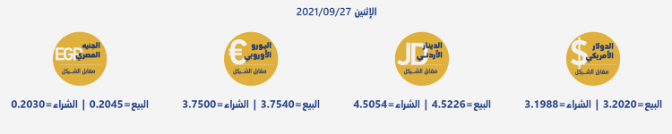 رام الله 27-9-2021 وفا- جاءت أسعار العملات مقابل الشيقل الإسرائيلي، اليوم الإثنين، حسب سلطة النقد، على النحو التالي: