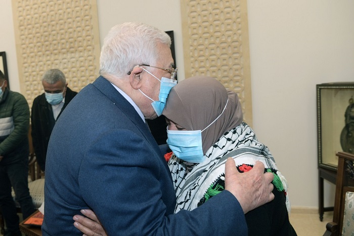 السيد الرئيس محمود عباس يستقبل والدة الأسير ناصر أبو حميد (تصوير: ثائر غنايم)