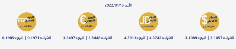 رام الله 16-1-2022 وفا- جاءت أسعار العملات مقابل الشيقل الإسرائيلي، اليوم الأحد، حسب سلطة النقد، على النحو التالي: