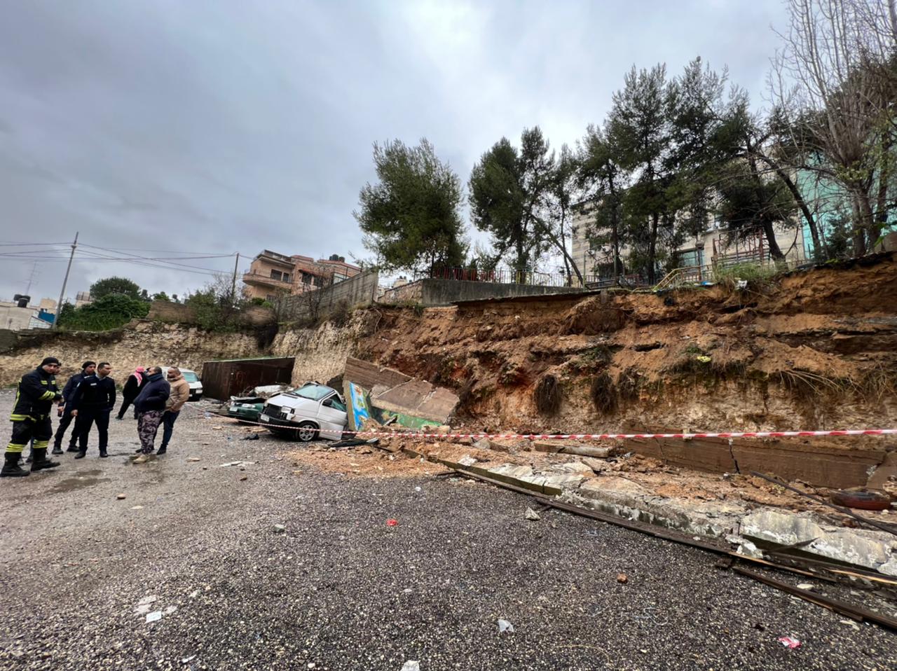 وأشار الى أن جدارا استناديا انهار على عدد من المركبات المتوقفة داخل موقف للمركبات في شارع القدس في مدينة البيرة، دون وقوع إصابات بشرية.