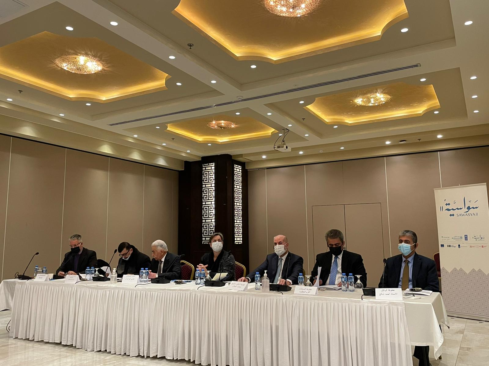 وحضر الاجتماع رئيس مجلس إدارة برنامج سواسية المشترك لين هاستيزجر، ومدير البرنامج كريستوفر ديكر، وأشرف عريقات ممثلاً عن النيابة العامة، ووكيل وزارة العدل أحمد ذبالح، ، وممثلين عن مؤسسات قطاع العدالة والدول المانحة.