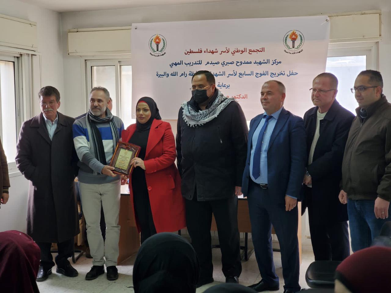 البيرة 25-1-2022 وفا- نُظم في مقر التجمع الوطني لأسر الشهداء في مدينة البيرة، اليوم الثلاثاء، حفل تخريج الفوج السابع للدورات المهنية لهذه الأسر .