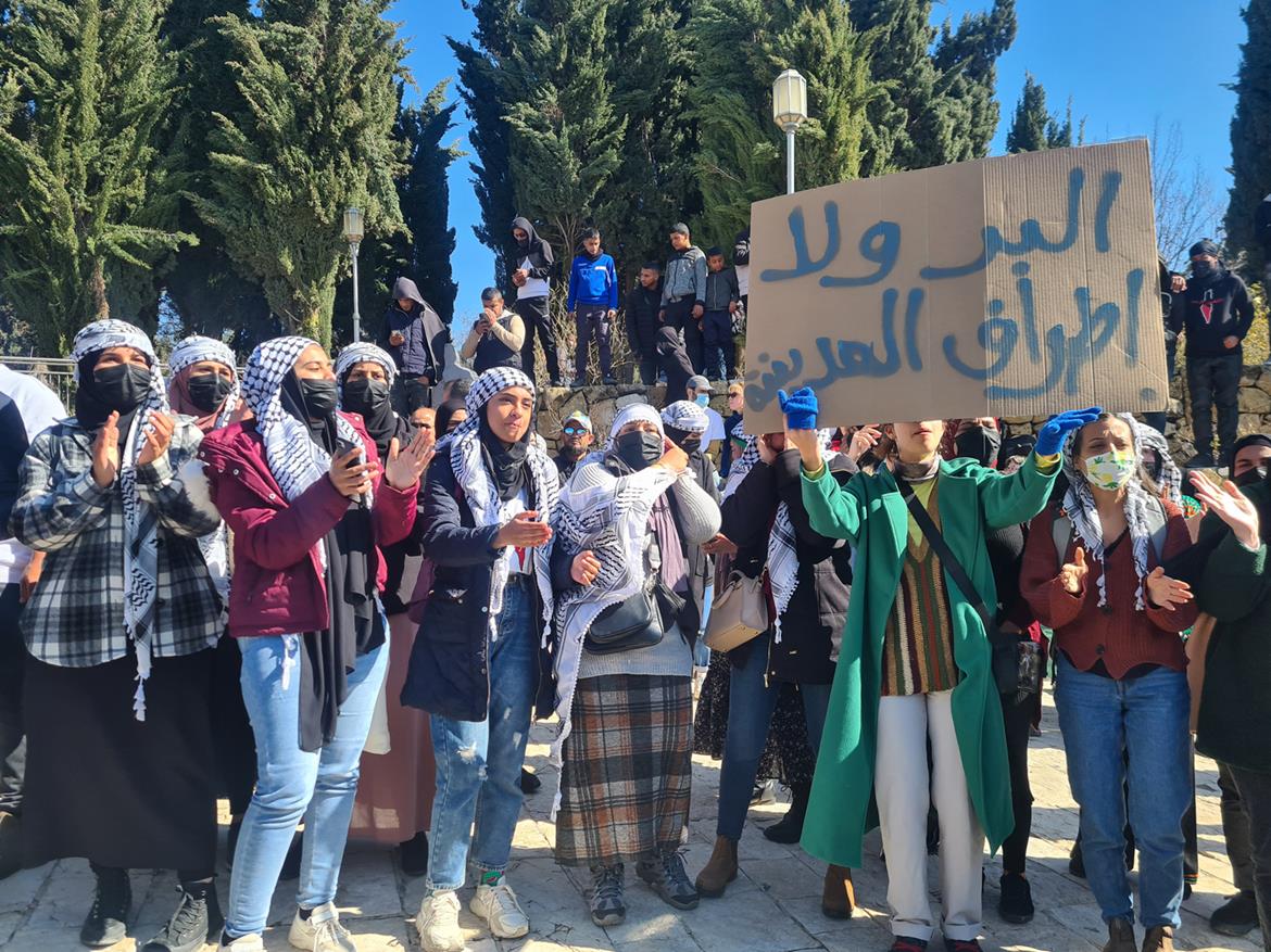 القدس 30-1-2022 وفا- شارك المئات من أبناء شعبنا في أراضي الـ48، اليوم الأحد، في وقفة نظمت أمام مكاتب حكومة الاحتلال، تنديدا بالهجمة الشرسة التي تواجهها قرى منطقة النقب.