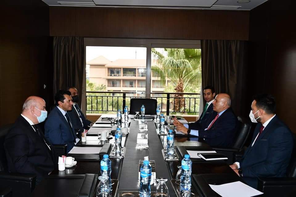 القاهرة 31-1-2022 وفا- بحث رئيس المجلس الأعلى للشباب والرياضة، الفريق جبريل الرجوب، اليوم الإثنين، في العاصمة المصرية القاهرة، مع وزير الشباب والرياضة المصري، رئيس المكتب التنفيذي لمجلس وزراء الشباب والرياضة العرب أشرف صبحي، آليات تعزيز التعاون بين البلدين.