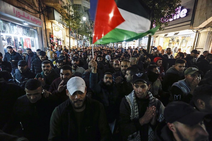 رام الله 5-1-2022 وفا- شارك المئات في مسيرة دعم وإسناد للأسير المصاب بالسرطان ناصر أبو حميد، الذي تدهور وضعه الصحي ونقل إلى مستشفى "برزلاي" الاسرائيلي.