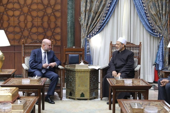 الهبّاش يسلم شيخ الأزهر أول نسخة من مصحف المسجد الأقصى هدية من دولة فلسطين