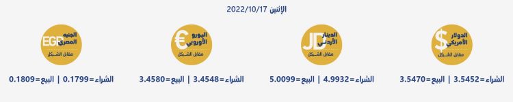 رام الله 17-10-2022 وفا- جاءت أسعار العملات مقابل الشيقل الإسرائيلي، اليوم الإثنين، حسب سلطة النقد، على النحو التالي: