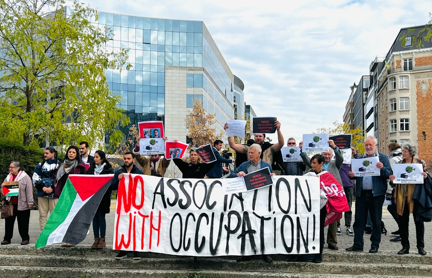 بروكسل 3-10-2022 وفا- نظمت الجالية الفلسطينية في بلجيكا ولوكسمبورغ بالتنسيق والتعاون مع جمعية الصداقة البلجيكية الفلسطينية، اليوم الاثنين، وقفة احتجاجية أمام مقر مؤسسات الاتحاد الاوروبي في بروكسل، رفضاً لاستئناف عقد مجلس الشراكة الاوروبي مع إسرائيل.