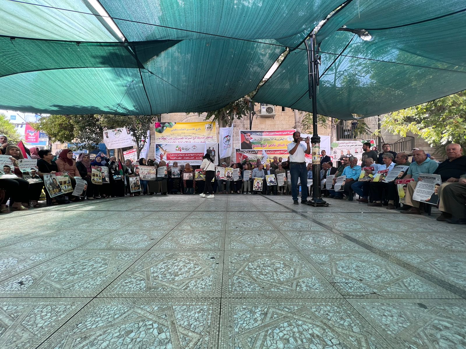 وشارك في الاعتصام العشرات من ذوي الأسرى، وأسرى محررون، وممثلون عن مؤسسات الأسرى وقيادات فصائل، ورفعت صور للأسرى المضربين والمرضى، وعُلّقت في الخيمة لافتات تطالب بوقف سياستي الاعتقال الإداري والإهمال الطبي المتعمد.