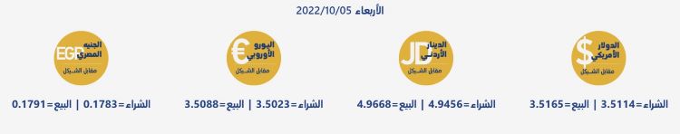رام الله 5-10-2022 وفا- جاءت أسعار العملات مقابل الشيقل الإسرائيلي، اليوم الأربعاء، حسب سلطة النقد، على النحو التالي: