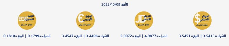 رام الله 9-10-2022 وفا- جاءت أسعار العملات مقابل الشيقل الإسرائيلي، اليوم الأحد، حسب سلطة النقد، على النحو التالي: