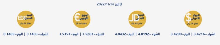 رام الله 14-11-2022 وفا- جاءت أسعار العملات مقابل الشيقل الإسرائيلي، اليوم الإثنين، حسب سلطة النقد، على النحو التالي: