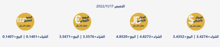 رام الله 17-11-2022 وفا- جاءت أسعار العملات مقابل الشيقل الإسرائيلي، اليوم الخميس، حسب سلطة النقد، على النحو التالي: